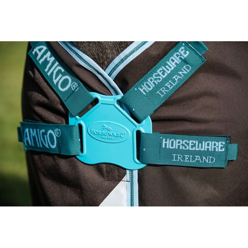This popular turnout offers a strong, waterproof, and breathable 1200D polyester outer with polyester lining and 250g medium-weight fiberfill. The Surefit Neck design with disc front closure allows freedom of movement to graze. Other features include leg arches, reflective strips, liner loops, and cross surcingles. Detachable hood included!