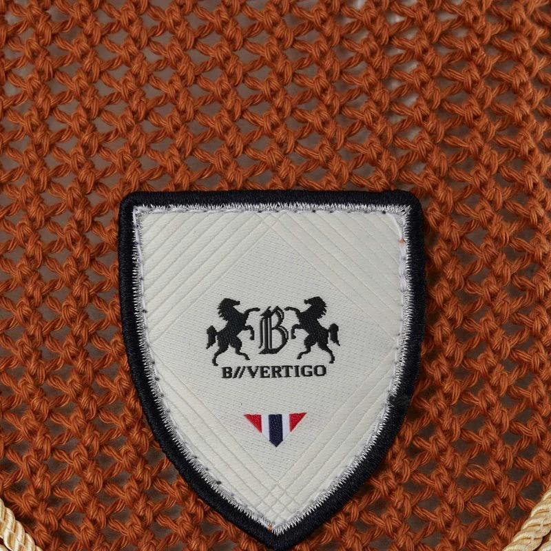 Classic crochet main part and stretchable soundless ears with coolmax fabric to keep your horse cool, even on warm days. B Vertigo logo batch in the center.
