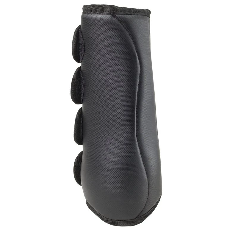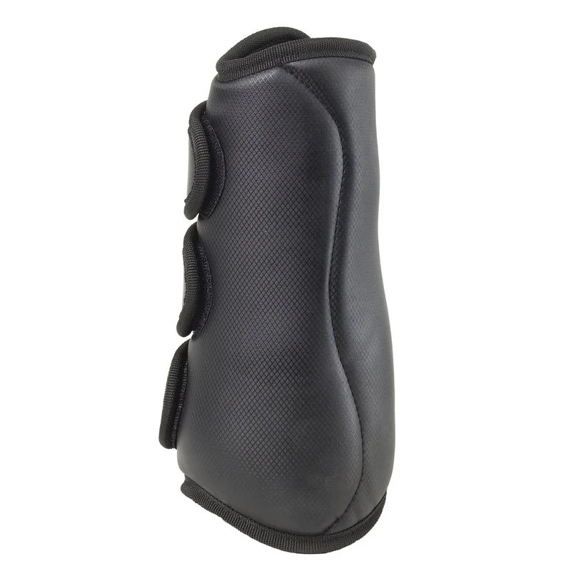 These classic dressage boots are pliable padded vinyl boots with rigid protection plates that cover the ankle and tendon area. Strong hook and loop tabs keep the boots secure.