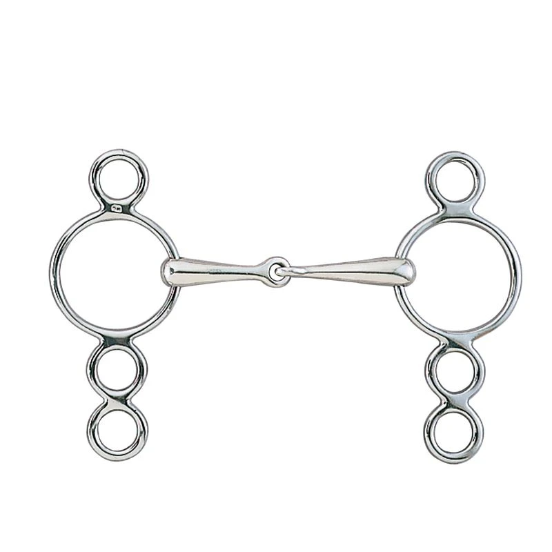 The Thin Jointed 3-Ring Gag is an effective gag with 3-ring elevator cheeks for adjustability. The thin mouthpiece is single jointed. Each side of the bit is perfectly balanced to assure total comfort and response. Lost wax cast and hand polished from the highest grade of 18/8 Stainless Steel. Lifetime guarantee against rust.