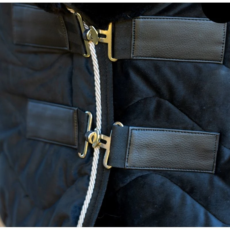 - Surcingle front closure overlaps to guard against drafts