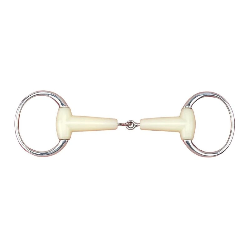 This bit features an apple scented polymer mouthpiece with a single joint. This mild bit features eggbutt cheekpieces which prevents the bit from sliding through the horse’s mouth when direct steering is performed. The shape of the cheekpieces also reduce the chance of pinching.