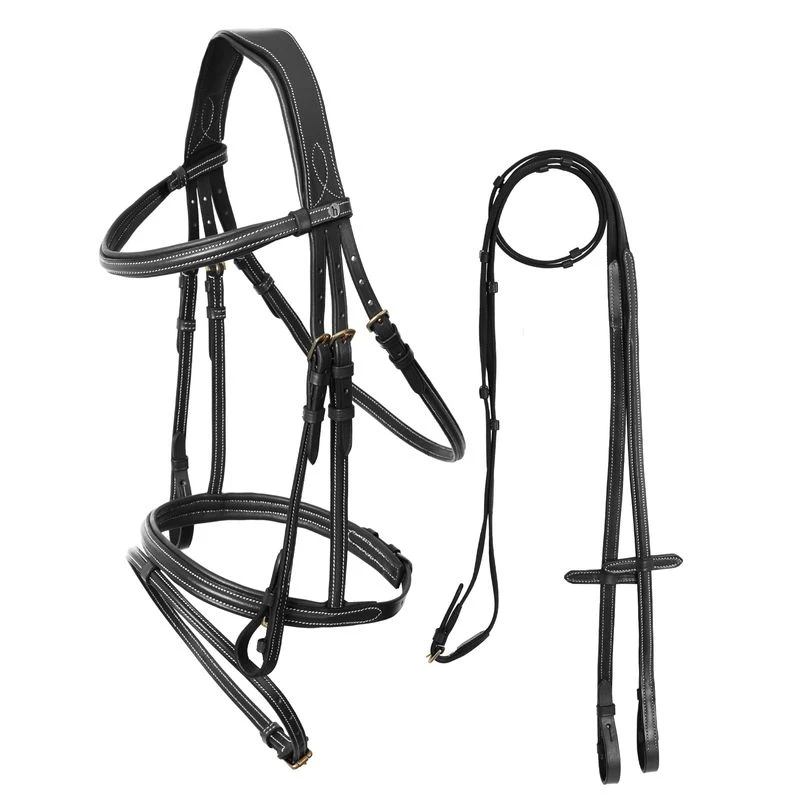 The Horze Buxton bridle is equipped with an anatomical crown that makes it super comfortable. Adjustable buckles ensure a perfect fit. Soft leather adapts to your horse’s head. Reins are included for you to get going right away!