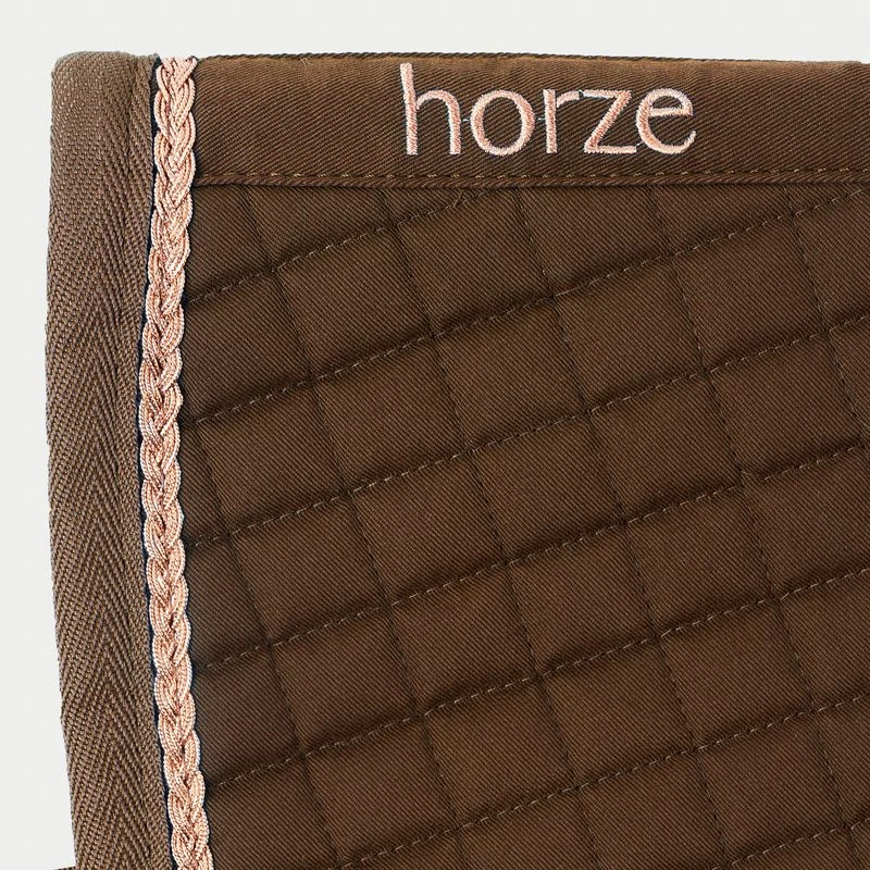 The Horze Glarus dressage saddle pad is trimmed with gorgeous silver braiding that will complement your horse tack perfectly. Functional quick-dry lining prevents moisture build-up. The square quilting supports your saddle, and the foam filling adds cushion.