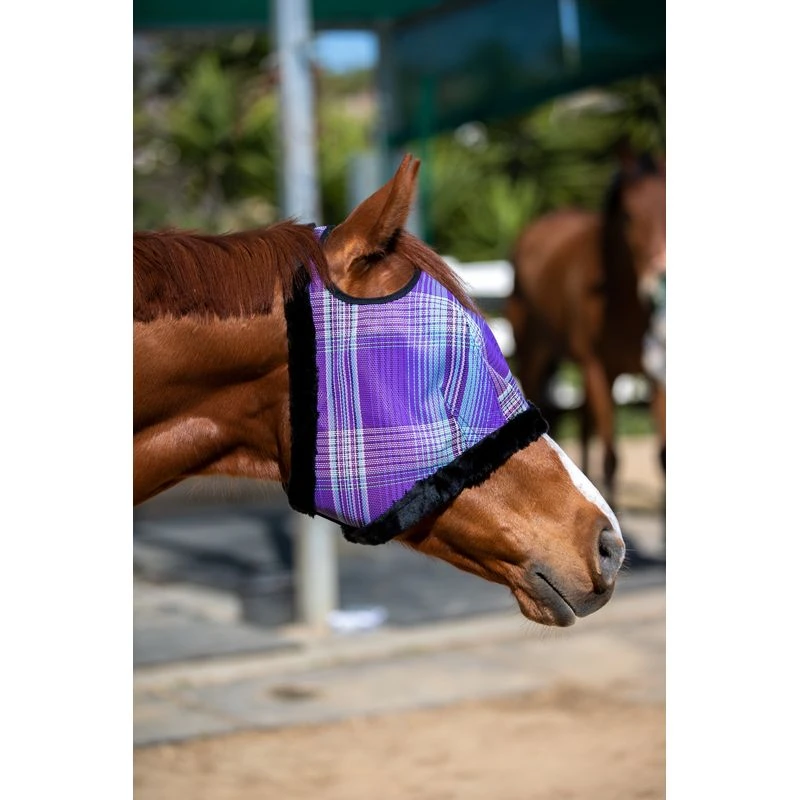 The Kensington Fly Mask w/Plush Fleece Trim provides a soft comfortable shield for your mini from biting insects and harmful UV rays.