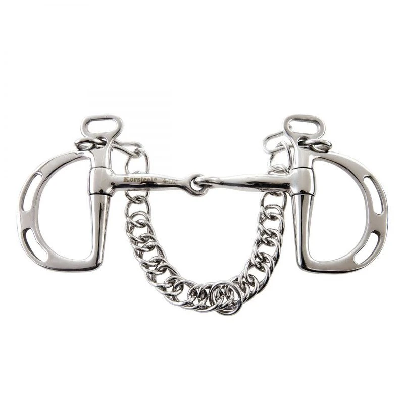 Similar benefits to the Pelham due to the curb action, but with the benefit of being able to be use with a single rein. Fixed cheek bit offering a stronger alternative to snaffle bits. Slotted cheek piece gives two alternative rein slots for different strength. The single joint applies a nut cracker action which applies pressure to the tongue, the bars of the mouth and the horse’s palate.