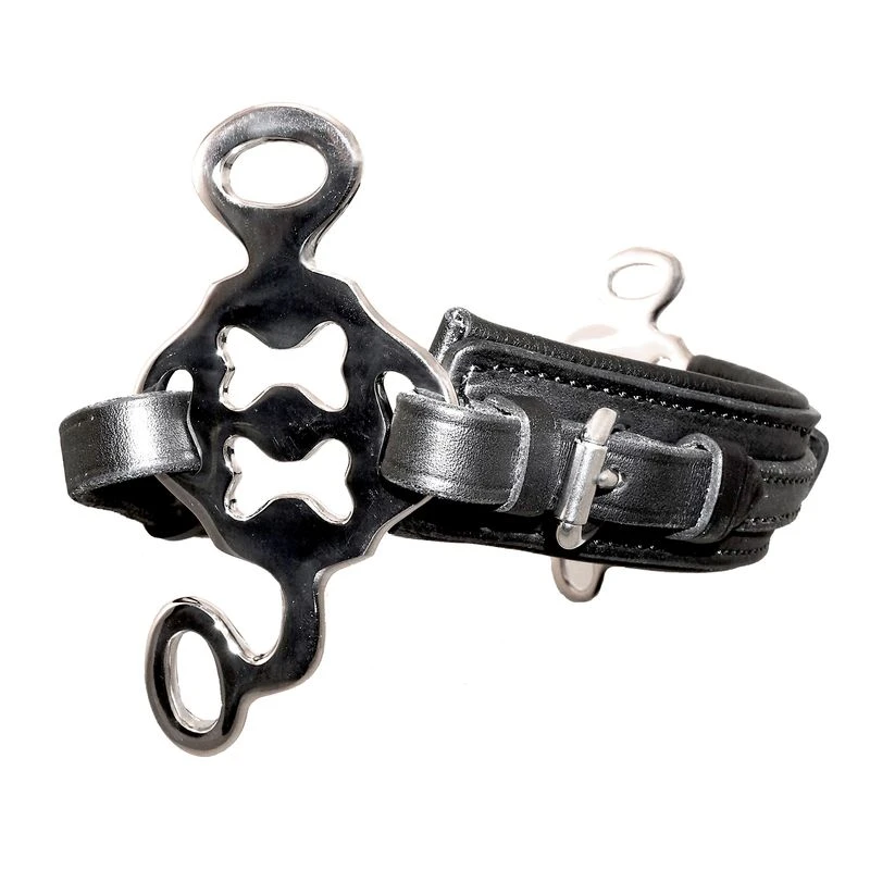 The Double Biscuit Hackamore is designed with a noseband that follows the natural contours of the horses face with wide, soft padding to ensure comfort. Crafted for optimum performance, this hackamore also looks stunning with stainless steel shank cheekpieces, an American made premium leather nosepiece and chin strap, and your choice of a leather or chain curb.