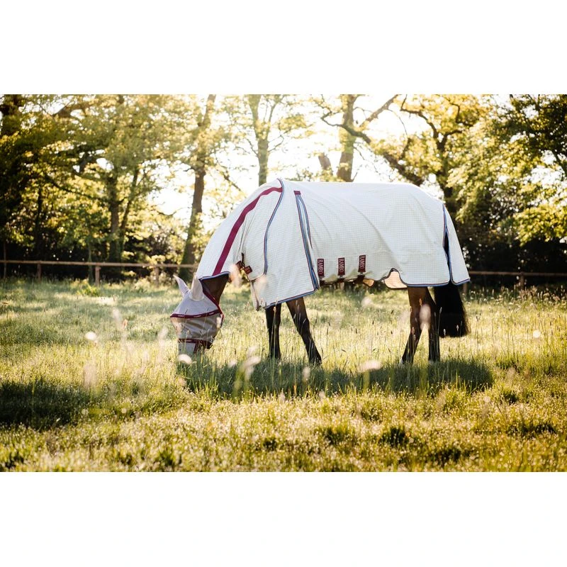 This high performance summer sheet offers breathabiliy with 90% UV protection. The supreme cut is particularly suitable for broader horses with the ultimate i shoulder freedom due to the patented split technology. The disc closure takes pressure off the shoulders and helps reduce shoulder rubs.