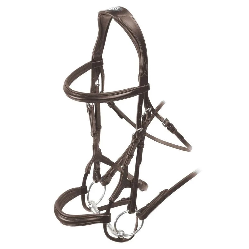 Minimizing pressure around the jaw and teeth, the noseband works with the horse’s anatomy for optimum performance. Technical features include a FreedomFit headpiece designed to relieve pressure thanks to the wide, cushioned crown with poll gap and cutaway ear profile. Soft leather combined with generous, anti-shock padding on the headpiece, browband, and noseband. An elegant profile due to the sleek, angled throatlatch and high shine stainless steel harness buckles complete this beautiful design. Comes with signature Velociti reins for a flexible, assured grip.