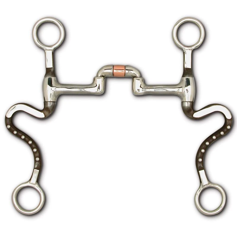 This show bit has 7 1/2″ curved shanks in stainless steel with Antique accents. It has a low port correction mouthpiece with copper segment.
