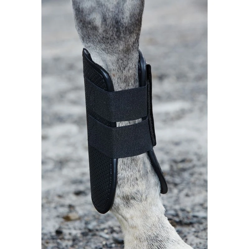 These lightweight boots are shaped to fit around the splint and fetlock area, without restraining the natural action of the horses movement. It features a tough strike pad which protects the tendon from impact or connection from the hind hooves. The soft and breathable Pro Mesh TPU outer provides maximum protection, whilst the tough PVC strike pad prevents knocks & brushing. With a secure, easy to use sandwich closure and breathable micro perforated neoprene lining that contours to the leg for the perfect fit & comfort.