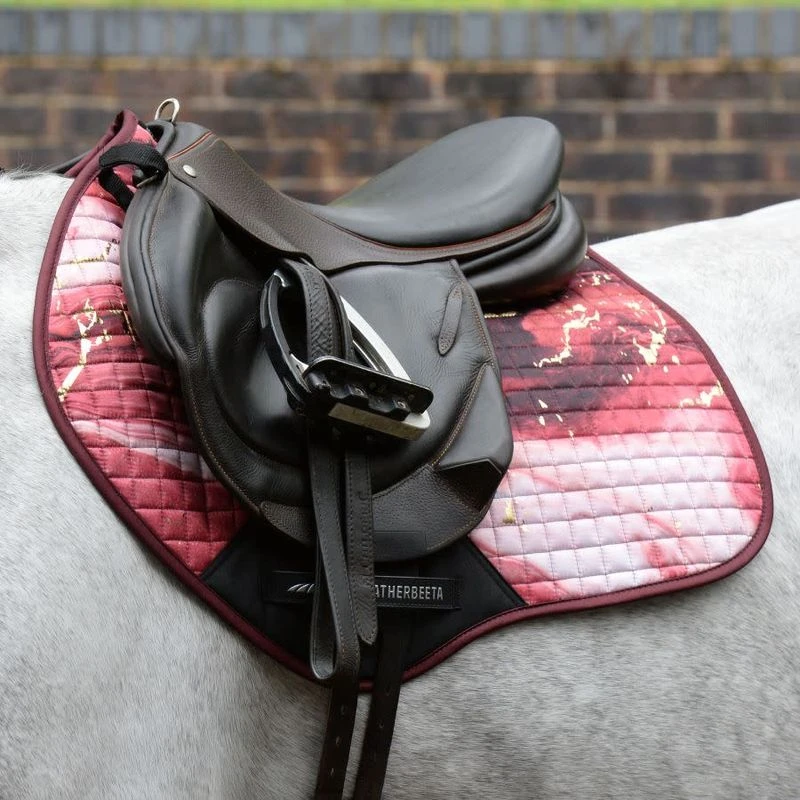 The WeatherBeeta Prime Marble Shimmer Jump Saddle Pad is a durable cotton pad with a polyester wick easy lining helping to keep your horse cool, dry and comfortable.