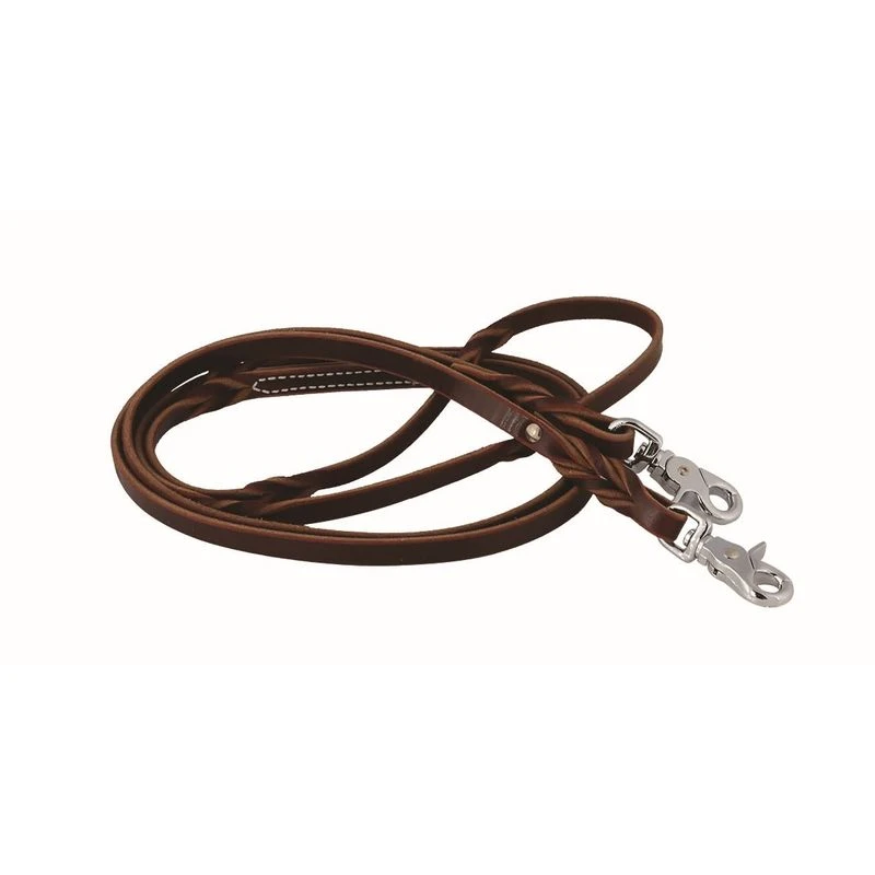 Make a winning pattern with these high quality latigo leather barrel reins. Leather center with twist accents. Burgundy latigo leather.